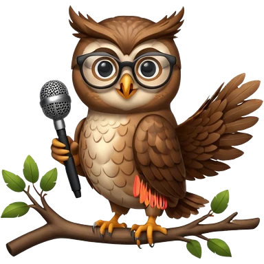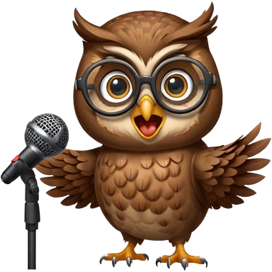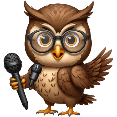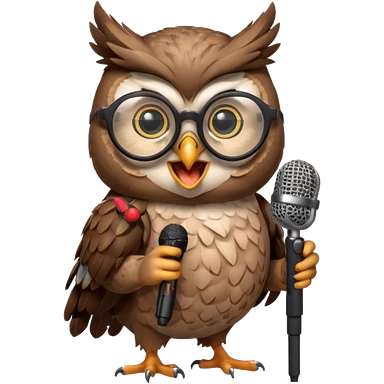 owl wearing glasses singing with microphone emoji
