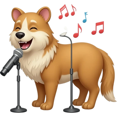 Fat monkey singing full body and with a microphone stand. Also female with lipstick emoji