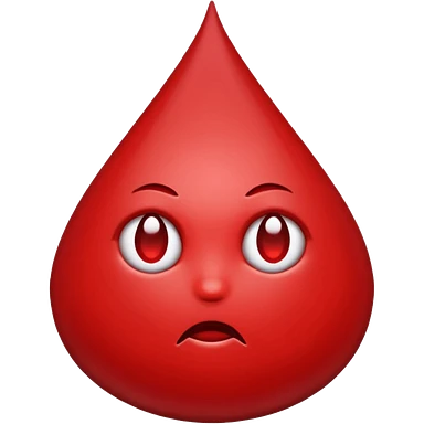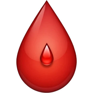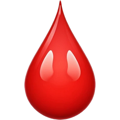An emoji of a blood drop, symbolizing a single drop of blood. The drop is smooth, glossy, and red, with a slightly reflective surface, representing injury, medical themes, or blood donation emoji