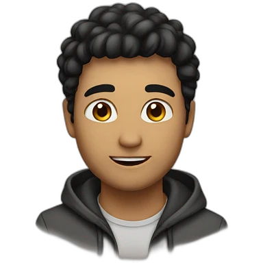 a man with tight stacked jeans that has a white tag sticking out and wearing a black hoodie with a face mask emoji