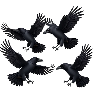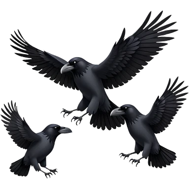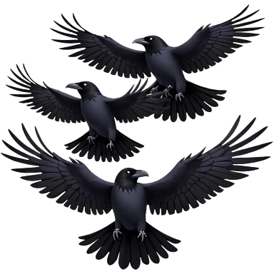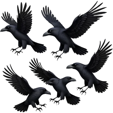 black raven in flight, representing bird shows at Puy du Fou theme park, emoji style emoji