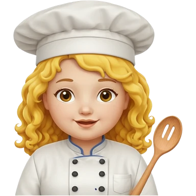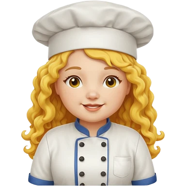 girl, yellow Long curly hair, happy, wearing chef uniform and chef hat emoji