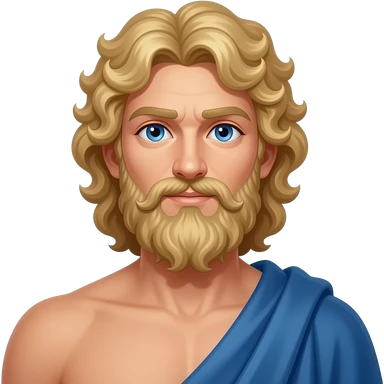 Jupiter from Roman Mythology with blue eyes, long blonde curly storm cloud hair and beard, azure cloak, shirtless emoji