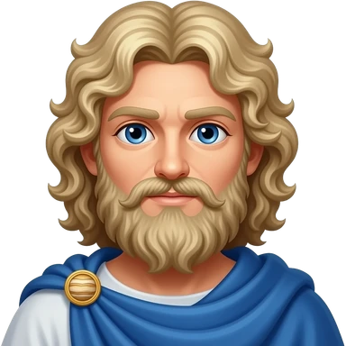 Jupiter from Roman Mythology with blue eyes, long blonde curly storm cloud hair and beard, azure cloak emoji