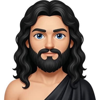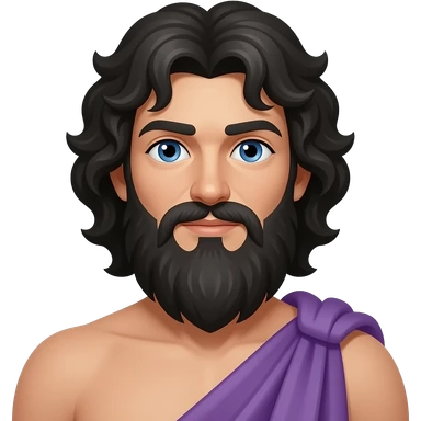 Jupiter from Roman Mythology with blue eyes, long black curly storm cloud hair and beard, pale purple cloak, shirtless emoji