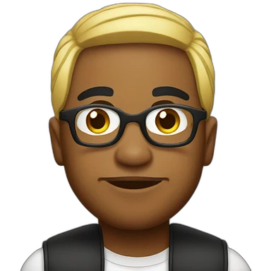 Un homme noir avec des lunettes et une petite moustache et peu de barbes avec un style de cheveux Sisco emoji