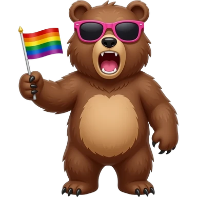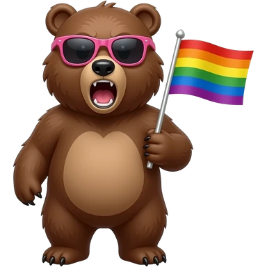 sassy grizzly bear pink sunglasses roar holding pride flag emoji
