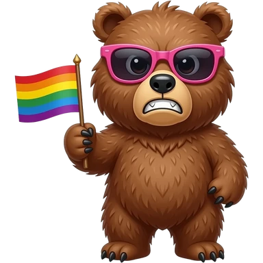 sassy grizzly bear pink sunglasses angry holding pride flag emoji
