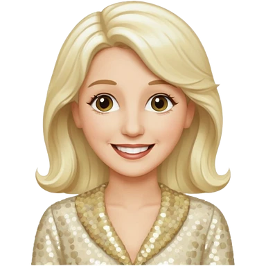 Patty Andrews from The Andrews Sisters with long platinum blonde hair, cream sequin outfit emoji