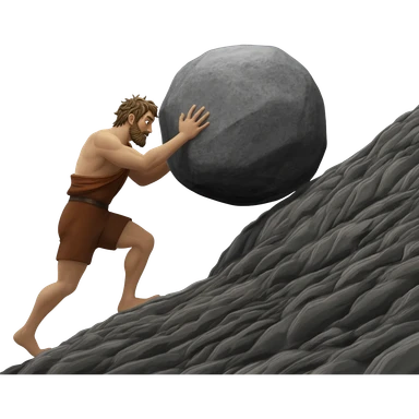 Sisyphus straining with a boulder on a steep slope, emoji style emoji