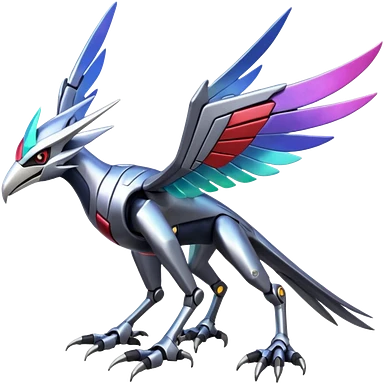 Futuristic Shiny Metallic Alloy Cyborg-Cyber-Skarmory-Nargacuga-Noivern-Silvally-fusion (full body) emoji