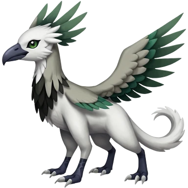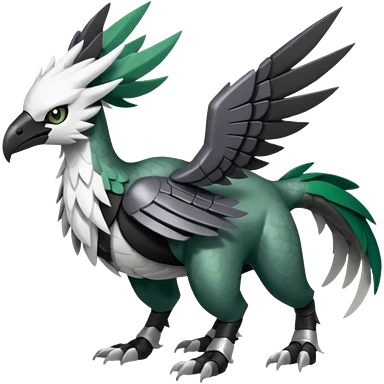 Shiny Black Grey White and Dark-Green Trico-Skarmory-Silvally-Skiddo-Sprigatito-Absol-fusion (full body) emoji