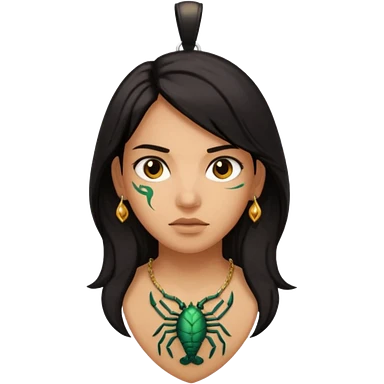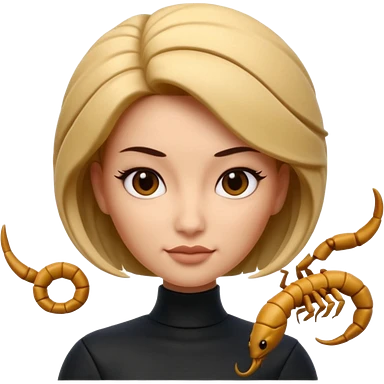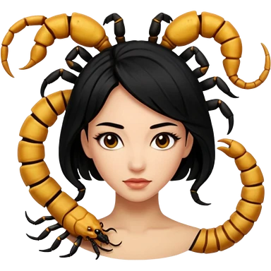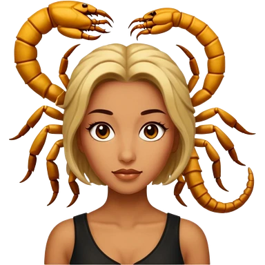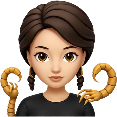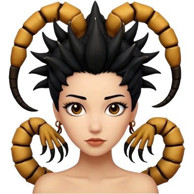 Scorpio zodiac signA 3D cartoon woman with a scorpion-shaped hairstyle, confident expression, smooth skin tone, Memoji-style. emoji