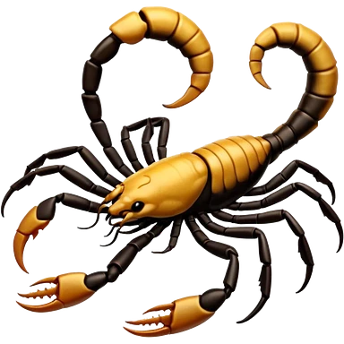 A 3D cartoon scorpion with shiny dark body and curled tail, on a light surface, realistic Memoji-style, soft lighting. emoji