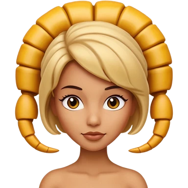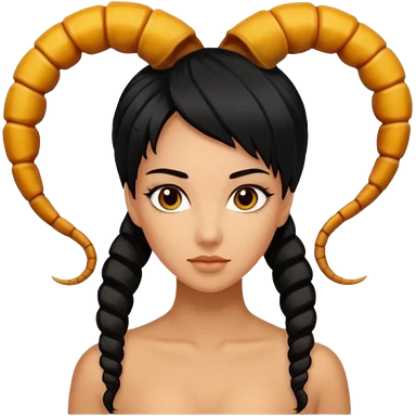 3D cartoon woman with a scorpion-shaped hairstyle, confident expression, smooth skin tone, Memoji-style. emoji