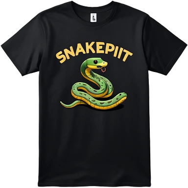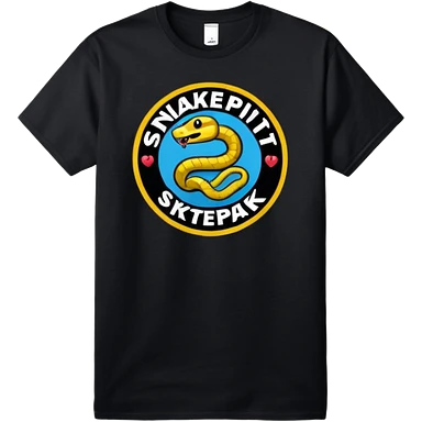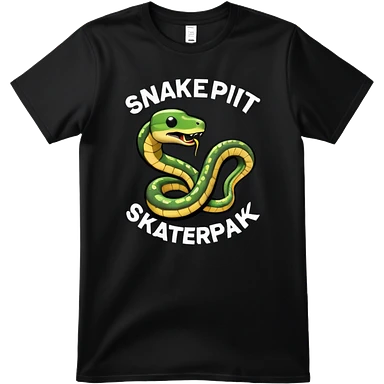 Gold T-shirt reads Snakepit Skatepark with the letter A emoji
