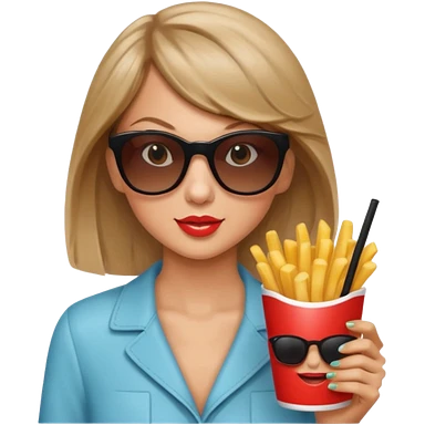 Taylor Swift, wearing sun glasses, holding a cup of fries emoji