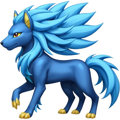 Cyan manectric-Electrike-Houndoom-fusion with neon-green stripes and orange eyes emoji