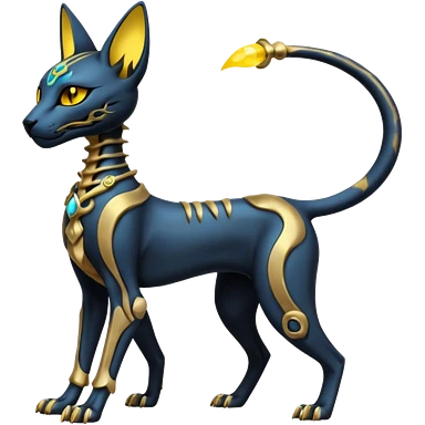 Futuristic Glowing shiny cyberpunk-Bastet-Umbreon-Salandit-fusion (full body) emoji