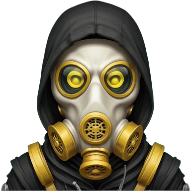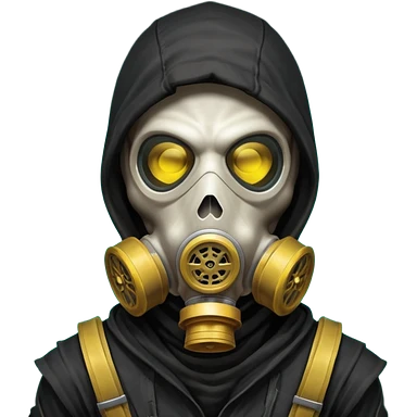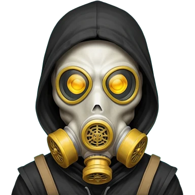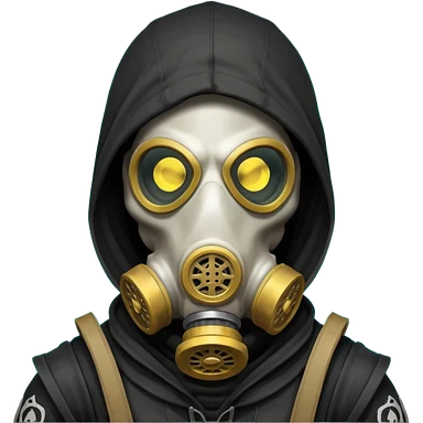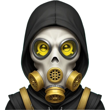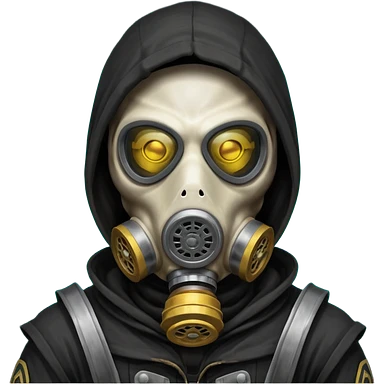 skeleton wearing a gas mask portrait, head and shoulders only, dark hood, glowing eyes inside mask, post-apocalyptic vibe, 3D cartoon, mobile game icon style, clean background, no text, no watermark emoji