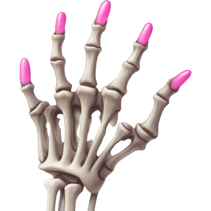 skeleton hand with long pink nails, thick finger bones, 5 fingers emoji