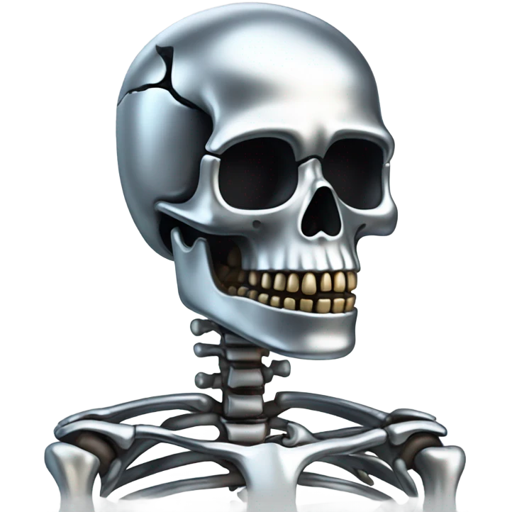 Skeleton made out of chrome eating spaghetti with peas emoji