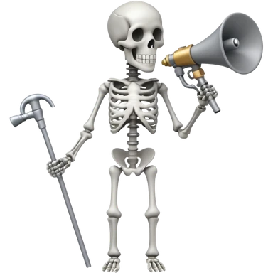 SKELETON WITH NO HEAD BUT A ROD ON THE HEAD PLACE ON THE ROD THERES TWO MEGAPHONES ON OPPOSITE SIDES ON THE ROD emoji