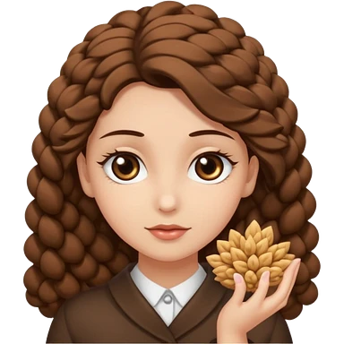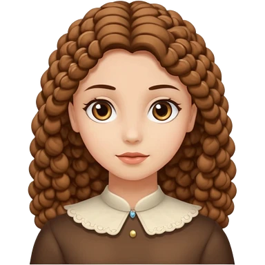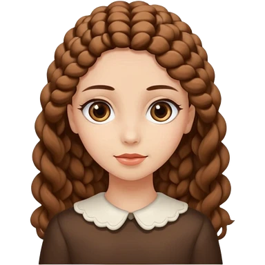creami una ragazza con riccioli in fondo sulle punte, capelli marroni scuri e lunghi, occhi con ciglia non corte marroni emoji