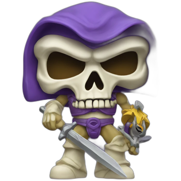 Skeletor, menacing pose, holding staff with ram skull, purple armor emoji