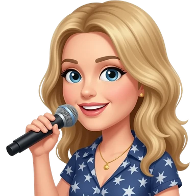 Sabrina carpenter singing at a concert wearing a silver bodysuit with kiss marks all over it pink sparkle heels. stage setting is very lit up with white stairs and confetti emoji