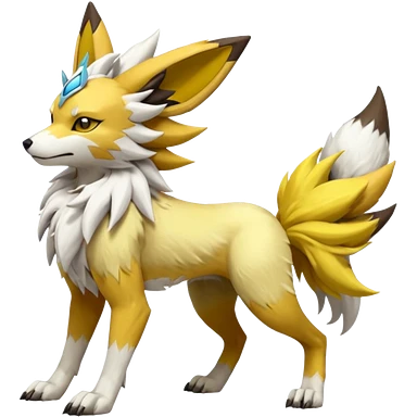Feral Quadrupedal Digitigrade Jolteon-Lycanroc-Renamon-Zeraora-Vernid-Sergal-fusion-hybrid-creature, full body emoji