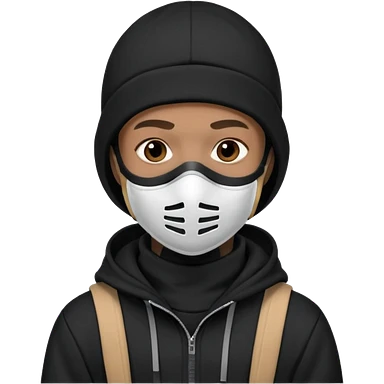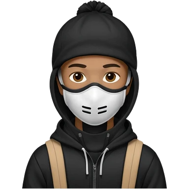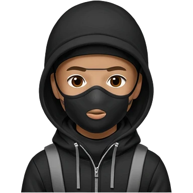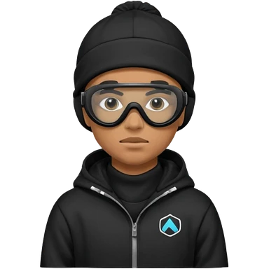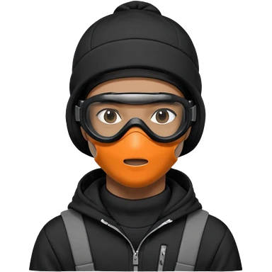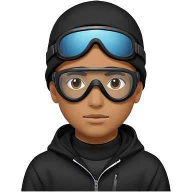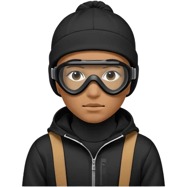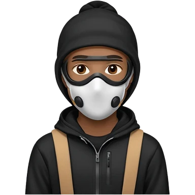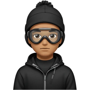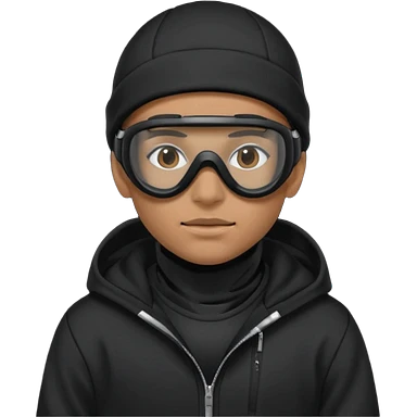 skier with black goggles hoodie and face mask looking stylish like an underground rapper. I said mask pls no face showing. Only eyes showing emoji