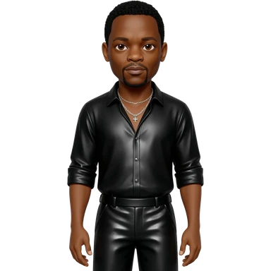 Samuel L Jackson with brown eyes, black hair, black metallic shirt, black metallic baggy pants, silver necklace emoji