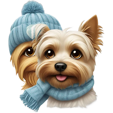 Grey yorkie, medium hair, pony tail and pink sweater emoji