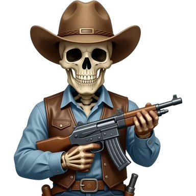 Skull cowboy with machine gun emoji