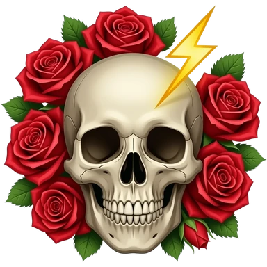 Skull surrounded by red roses with a 13 point lightning bolt behind emoji