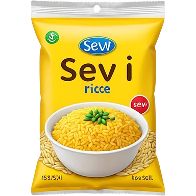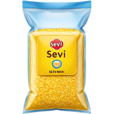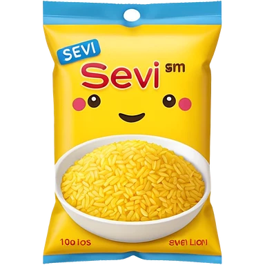 yellow rice in a packet without any face on it with the name on the packet "sev" emoji