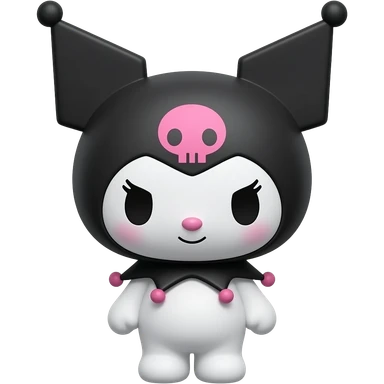 Recreate this Kuromi-style 3D chibi character, keep the same pose and design, change the main color to black (hood black, skull dark gray/black, keep pink accents or make them dark pink), smooth glossy 3D style, centered, no background, high resolution. emoji