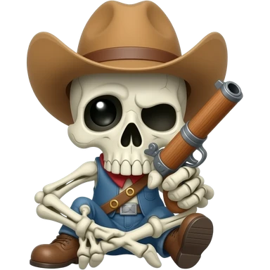 Skull cowboy with machine gun emoji | AI Emoji Generator