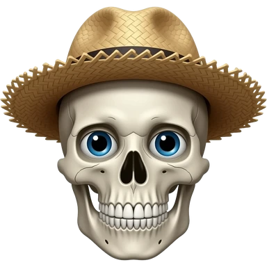 Make a skull emoji wearing straw hat emoji