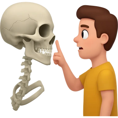 skull making a shushing gesture, finger to mouth, expressive face emoji