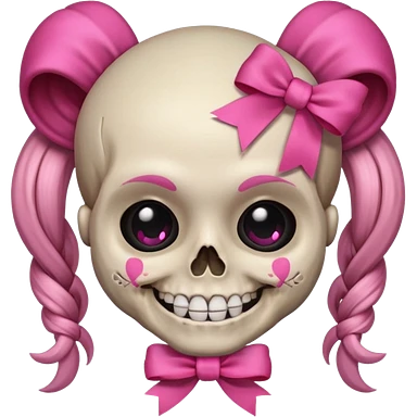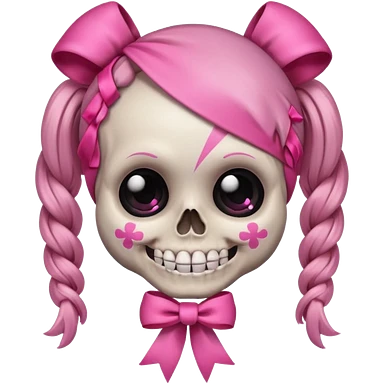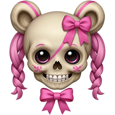 skull emoji with pink ribbon pookie not with hair emoji