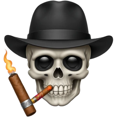 Skull head with a black hat with a cigar in his mouth emoji
