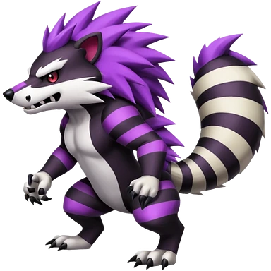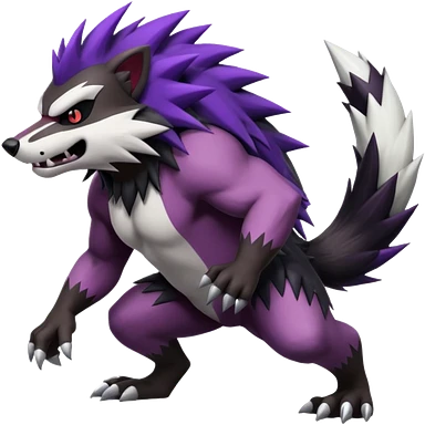 Cool edgy scaly shiny vibrant badass Skuntank-Obstagoon-Zangoose-fusion, full body emoji