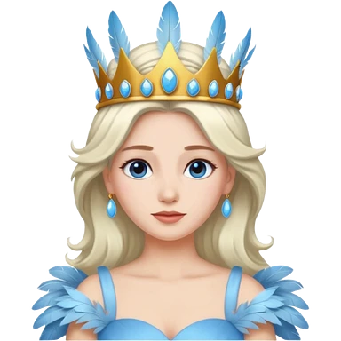 Sky Queen – feather crown + light-blue gown emoji | AI Emoji Generator