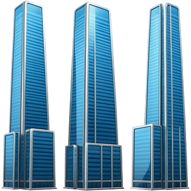 Skyscraper-style cookie factory with multiple floors, glass windows showing cookie production, rooftop steam vents, emoji-style emoji