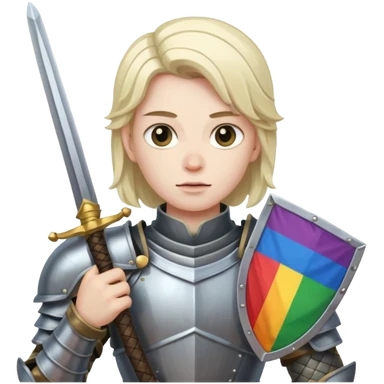 In armor and sword with dumb look on face Slack social justice warrior with pride flag emoji