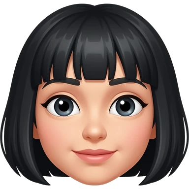 black eyes, slightly shorter hair, slant eye emoji