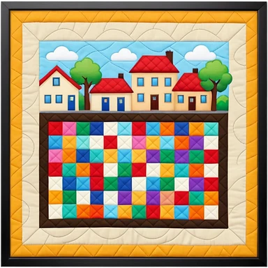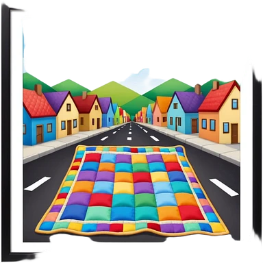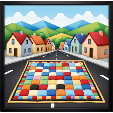 A Block saying "wifi" lying on a street in a quilt village emoji