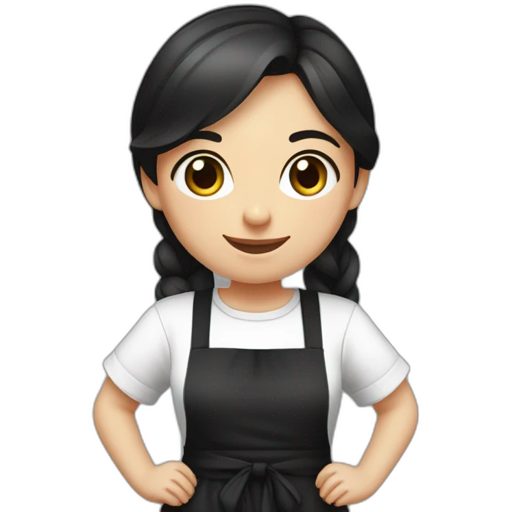 Slavic girl with dark hair in a white T-shirt and a black apron smiles with a rag in her hands and her hands on her sides emoji | AI Emoji Generator